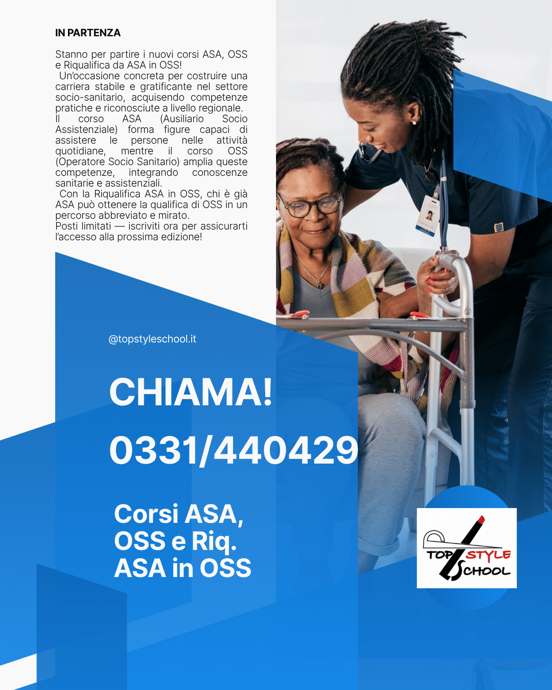 Per chiunque abbia già compiuto 18 anni e intenda seguire le proprie passioni per poter accedere al mondo del lavoro, la A.T.S.S. TopStyle propone corsi serali di acconciatura, estetica, asa, oss, riqualifica oss, discipline bionaturali, animatore anziani, corsi di lingua inglese, corsi di lingua spagnola…